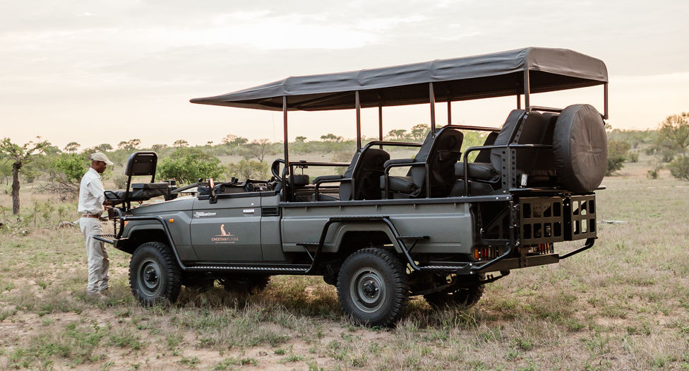 Cheetah Plains' twice-daily game drives are taken in their innovative Land Cruiser Electric Safari Vehicles. This bold advance toward zero-emission game viewing is what drives their sustainable safari experience.