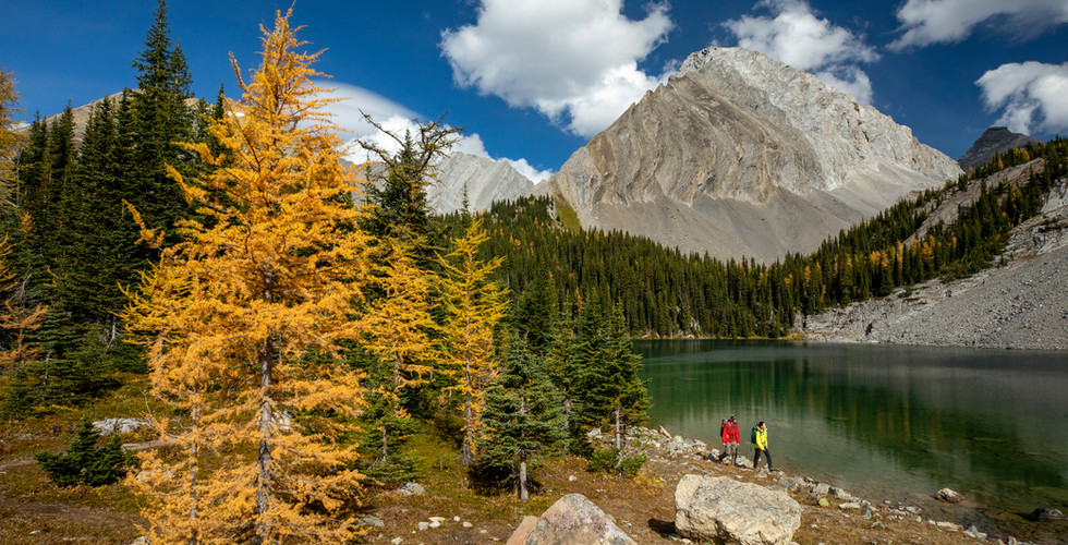 Chester Lake is renowned as a larch-viewing trail in autumn. For those precious few weeks at the end of September and the beginning of October, golden larch views stretch across the valley. Chester lake never fails to impress with its turquoise, mirrored water providing clear reflections of the surrounding rocky peaks. The scenery is incredible in all directions, especially in the fall when the most amazing golden hues of larches spread out before you from the direction you came. Hiking, fishing for Cutthroat and Dolly Varden Trout and if you are adventurous in the cooler months even swimming are great ways to enjoy the day there. Kananaskis Mountain Lodge will provide guests with a Peak Picnic to fuel your adventure and enjoy along the trail.