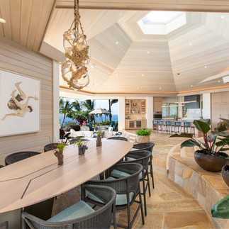 Set on a cliff within the prestigious Mauna Kea Resort on the Kohala Coast, Hale ‘O Ka La, meaning “House of the Sun,” was rebuilt from the ground up after the 2023 coastline fires. The 5,358-square-foot villa now marries the estate’s original character with a fresh, modern aesthetic, positioning it as a centerpiece of the region’s ongoing renaissance. Originally conceived in 1993, the estate was envisioned as three distinct pavilions connected by breezeways, open to the trade winds, a design principle preserved in the restoration. Even now, the main pavilion, with its hexagonal roof and multilevel form, invites guests to orient themselves as much by the sound of the ocean and palms as by sight, with glass panels that fold entirely into the walls displaying sweeping Pacific Ocean and Hualālai views.